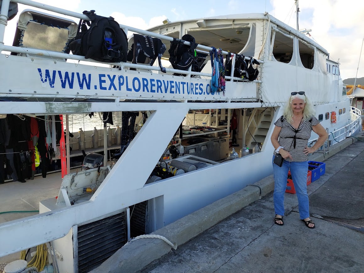 The Caribbean Explorer II, part of Explorer Ventures' fleet, is an older but seaworthy vessel. The dive deck, though retrofitted, was functional. Cabins are small, and ours had a double bed (one person crawled over the other all week) and a full bath. Storage is limited, so soft luggage is essential. Meals were hearty comfort food, served buffet-style, with plenty for everyone, including snacks between dives.